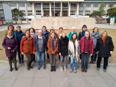 Dieses Foto erreichte uns aus Peking: Die Gruppe (mit Verstärkung aus Hamburg, Bochum, Münster und Duisburg) vor der chinesischen Nationalbibliothek.